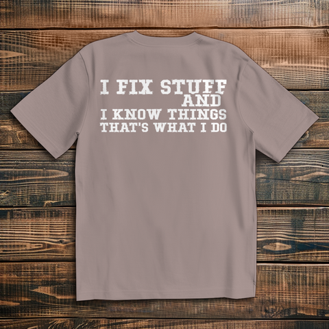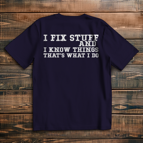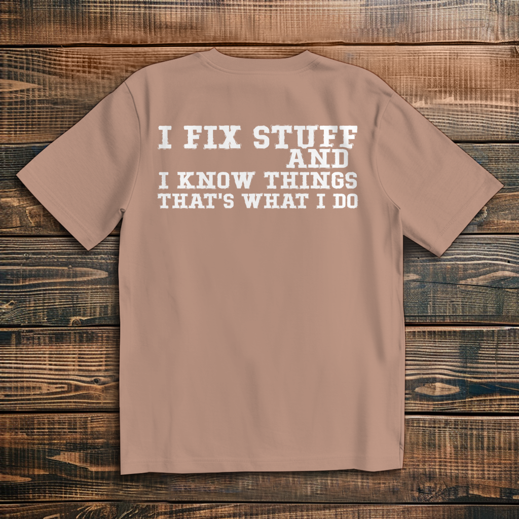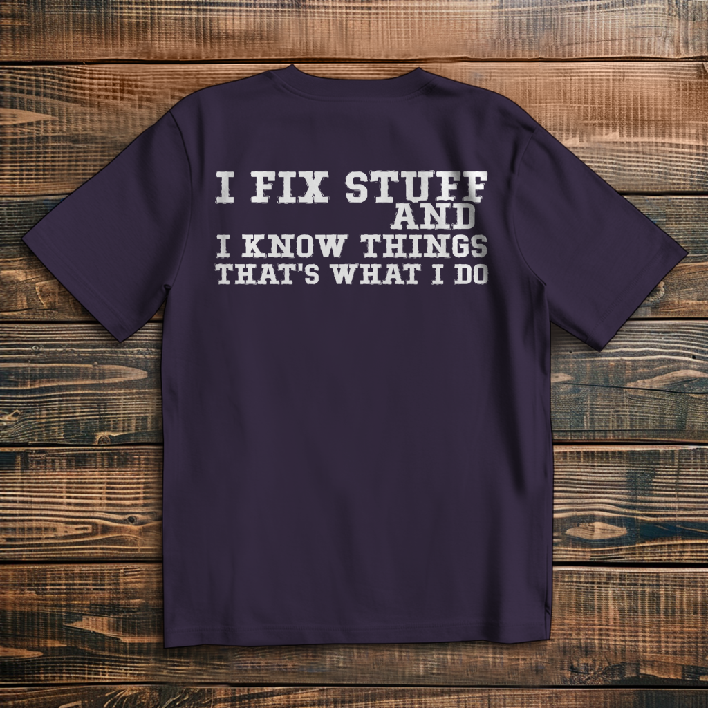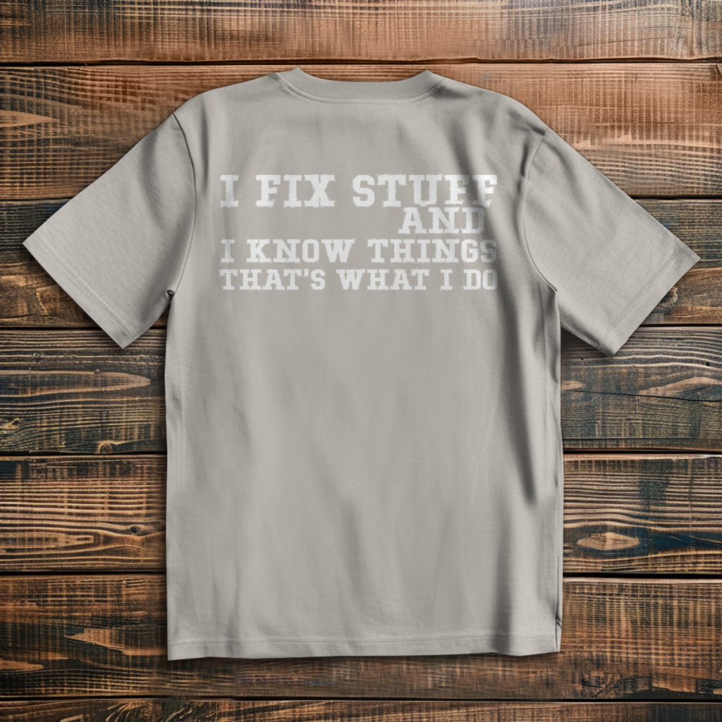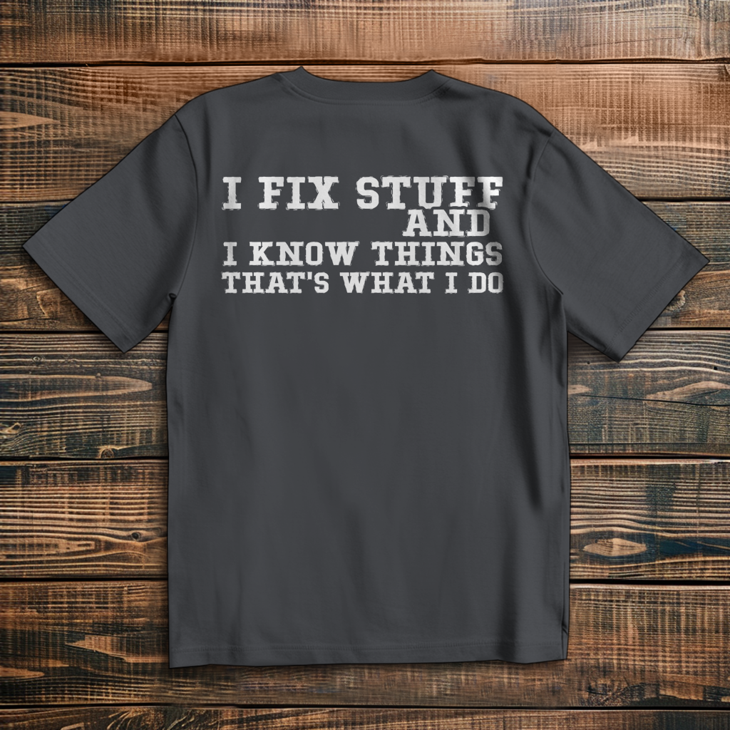 Oversize Biker Rückendruck T-Shirt: I Fix Stuff And I Know Things That's What I Do Im Angebot