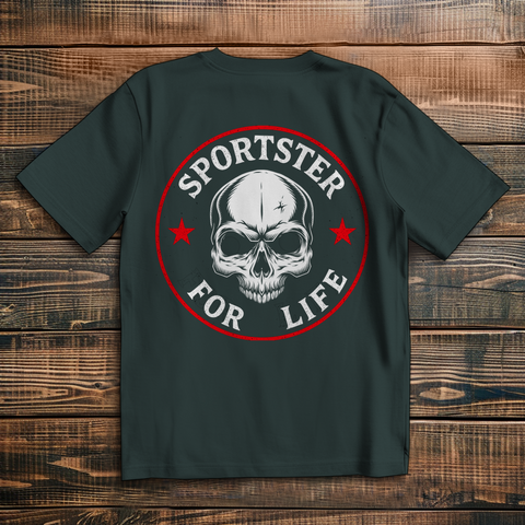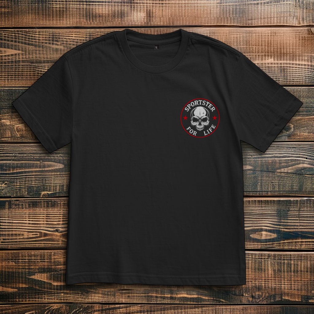 Oversize Biker T-Shirt: “Sportster for Life” Biker Shirt" - Black / S